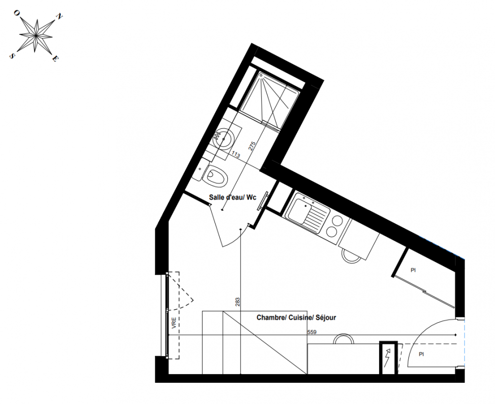 163 704€ Appt. Studio 23.03m2 0-RDC