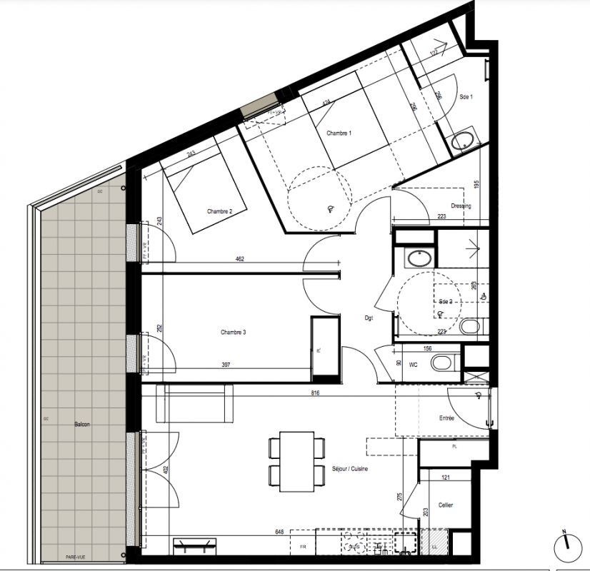 Tous les logements disposent d'un espace extérieur privatif (balcon ou terrasse). Les orientations ont été étudiées pour garantir luminosité et confort d'usage.