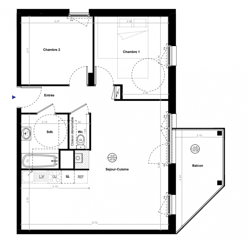 | Voir | Disponible | 225 100€ | D001 | Appt. | T3 | 57.6m2 | 0-RDC | Disponible | 225 100€ | Voir |
