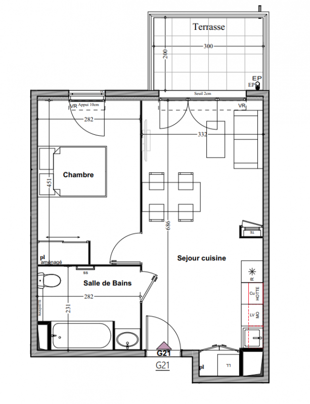185 999€ Appt. T2 40.23m2 0-RDC