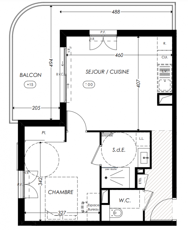 405 000€ Appt. T2 48.2m2 0-RDC