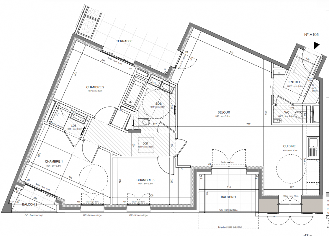 Portes intérieures de 2,14 m de hauteur