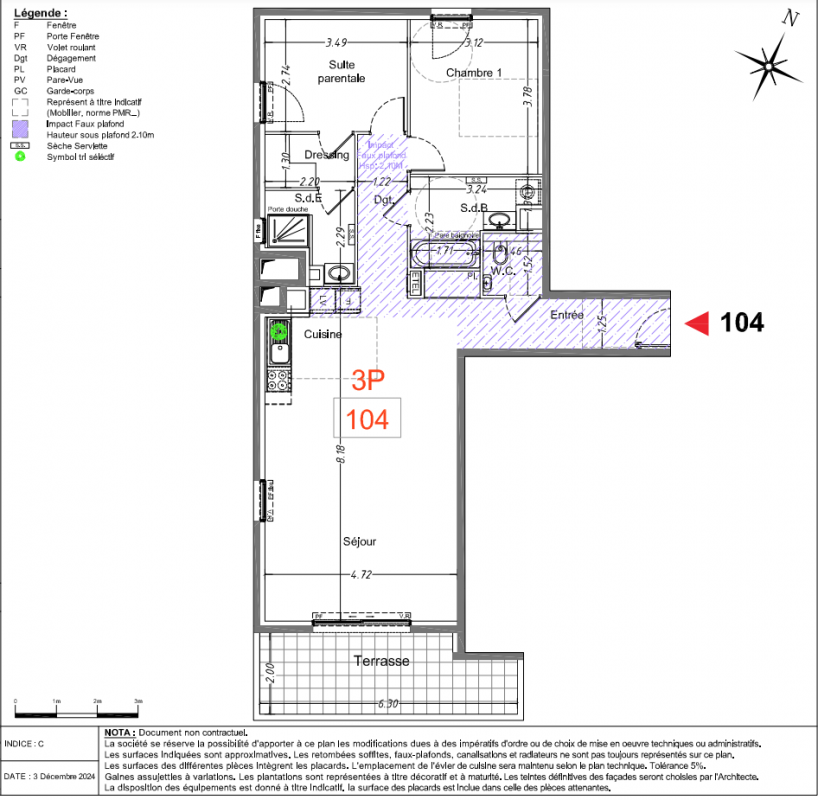 638 999€ Appt. T3 85m2 3ème