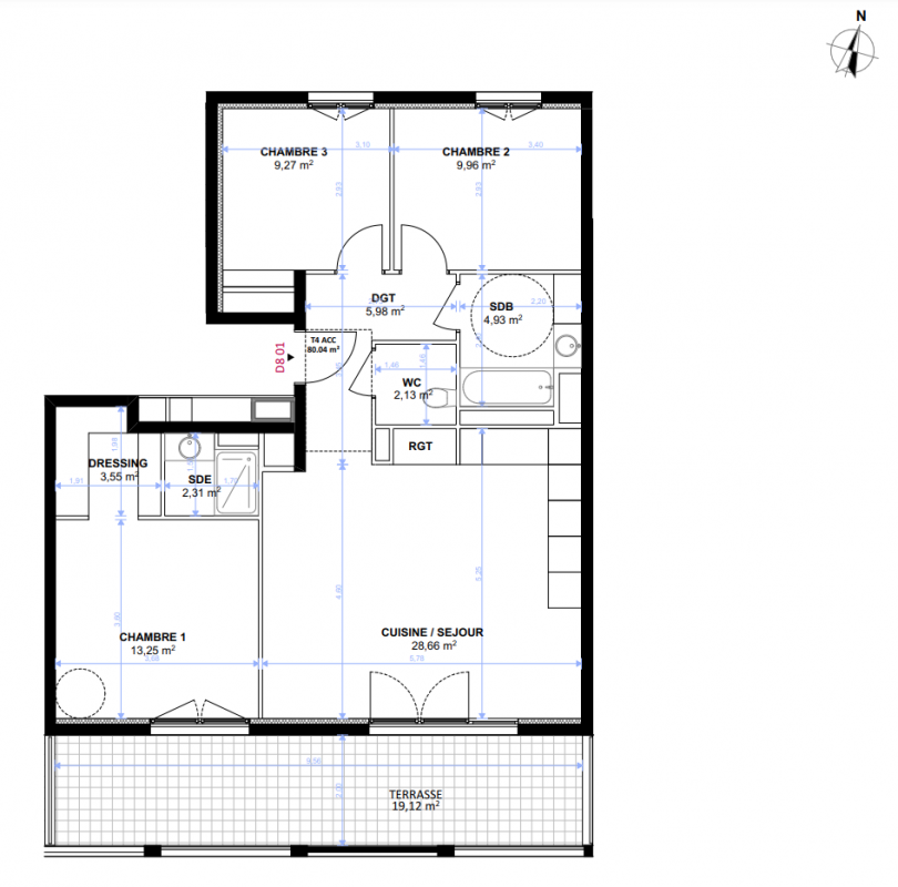 297 100€ Appt. - 66.08m2 3ème